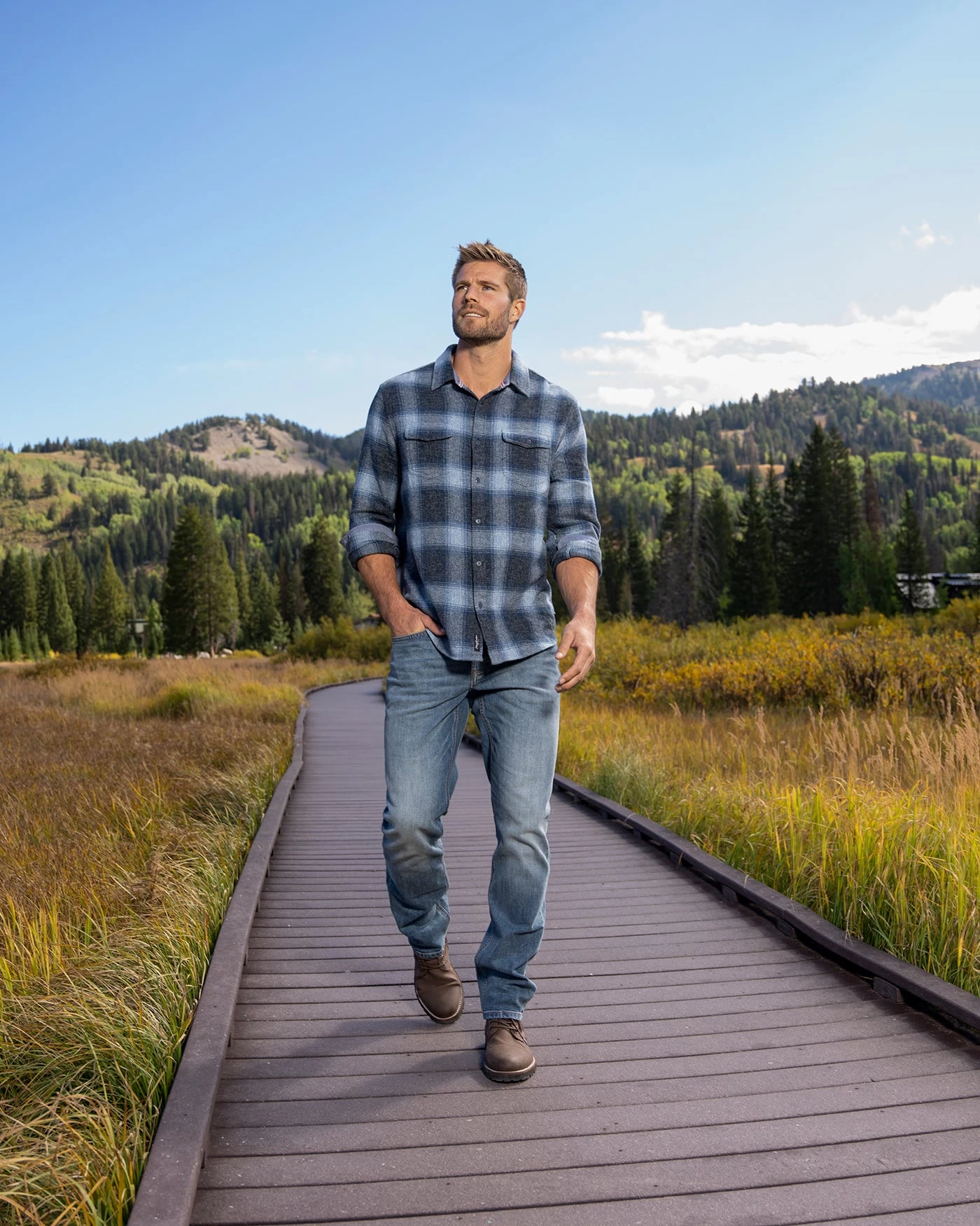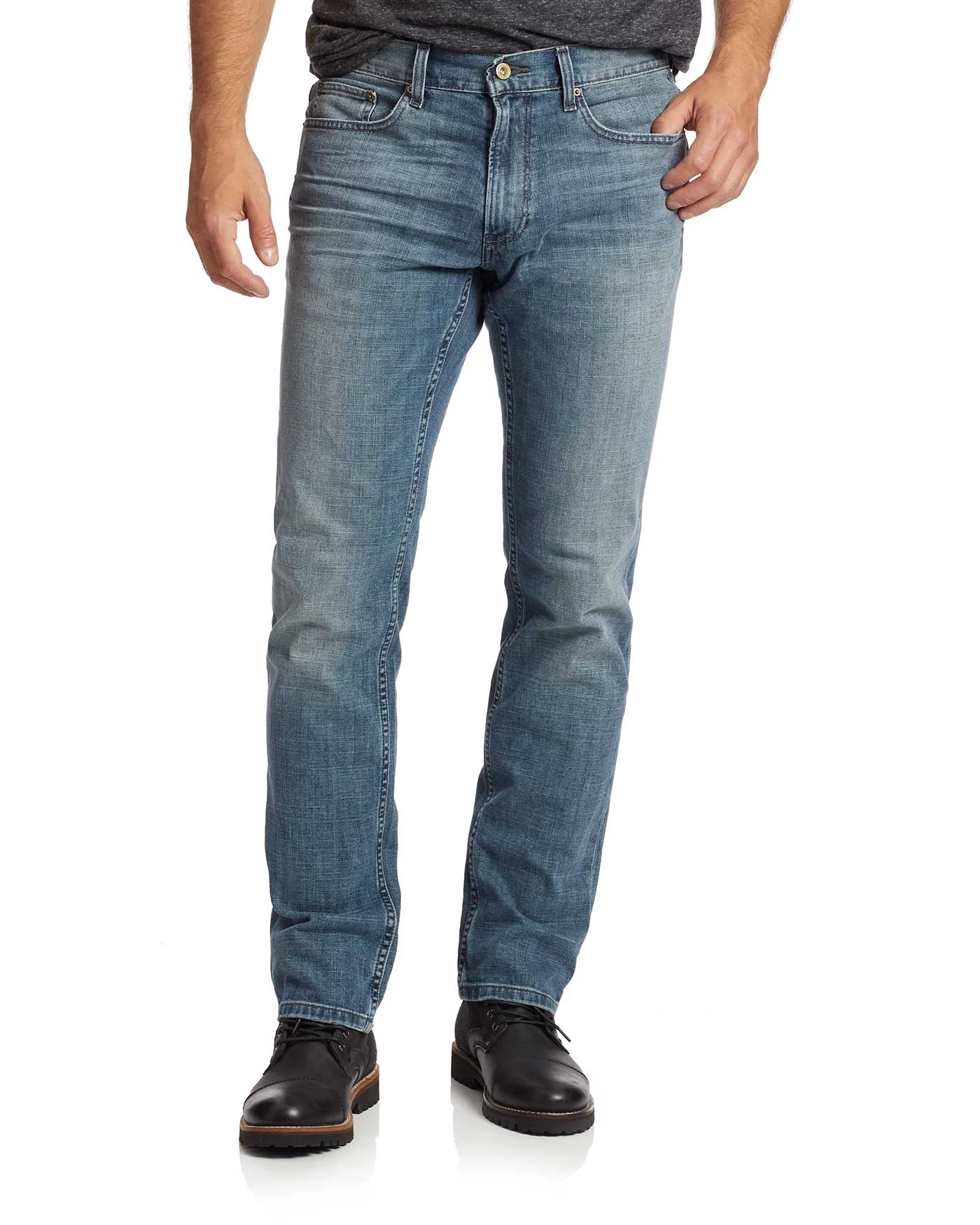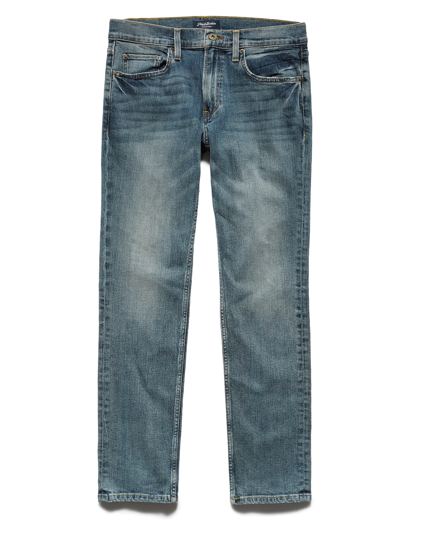 All-day comfort comes easy in our premium stretch denim jeans. Ideal for everyday casual wear, our slim-fit Adrian Jean features a clean, tapered leg, traditional 5-pocket styling, and a hint of spandex for a more flexible fit. Regular rise; zip-fly front with logo button closure. Leather logo back patch. Light wash.