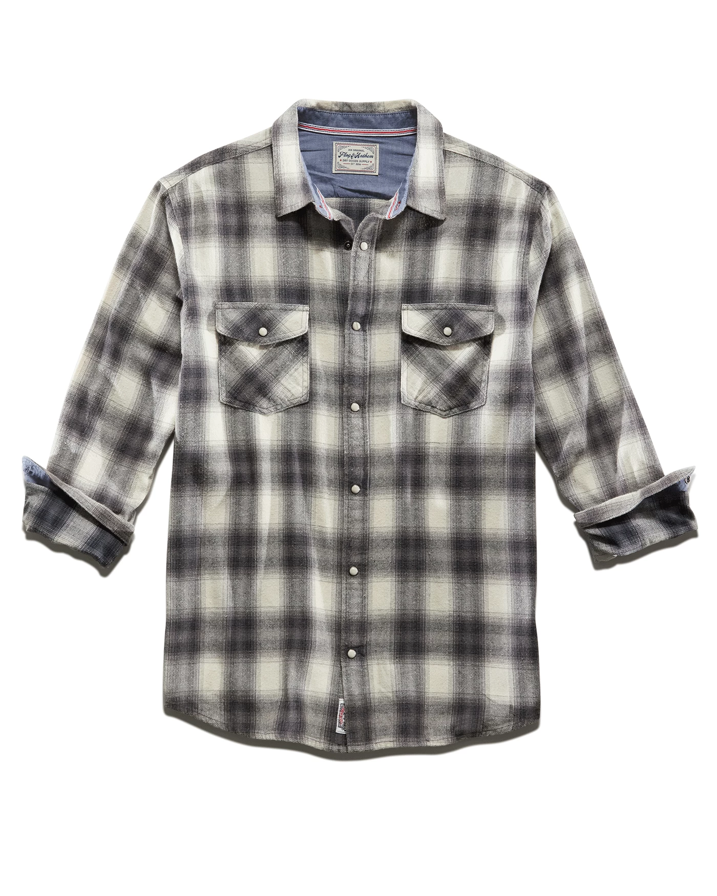 Comfortable yet rugged with a classic plaid print, this long sleeve button-down shirt is perfect for all-season wear. Made from premium cotton flannel, uniquely washed for an authentic vintage aesthetic and supremely soft feel, it wears like a perfectly worn-in shirt from the first moment you put it on. Contrast fabric inside collar stand, back yoke, and sleeve cuffs. Dual front flap pockets; pearlized snap closures. Tailored athletic fit.