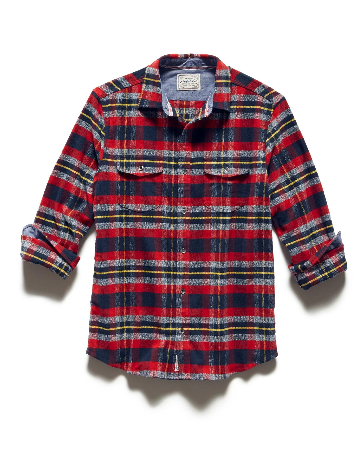 From brisk mornings to cool nights, our Ames Flannel Shirt has you covered. Made from premium cotton brushed on both sides for a softer hand and matched with a classic box plaid print, it’s the commander of the fleet when it comes to all-day comfort and versatile style. Contrast fabric inside collar stand, back yoke, and sleeve cuffs. Dual front chest pockets; button closures. Tailored athletic fit.