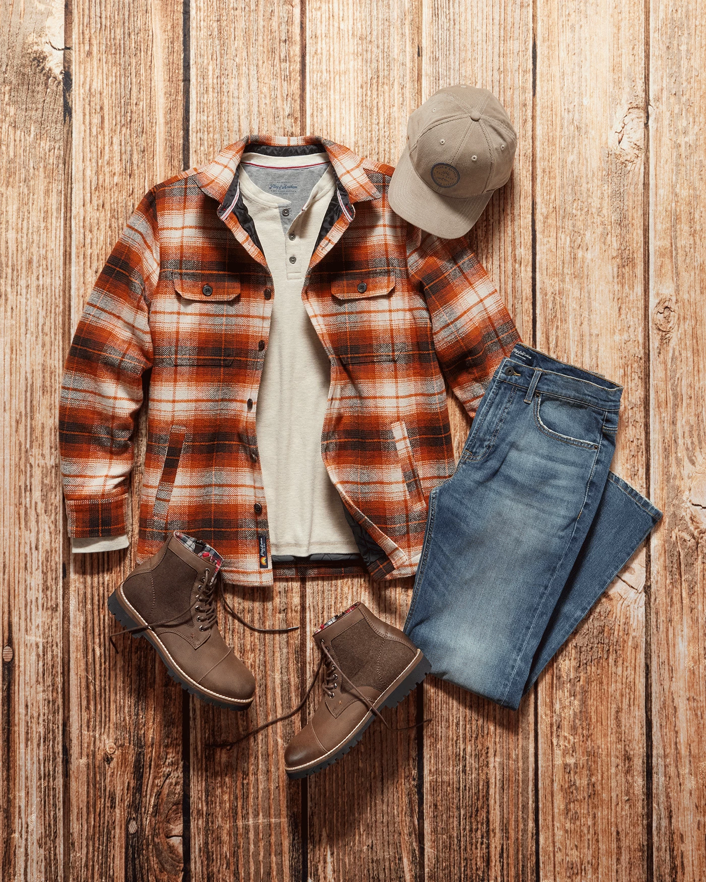 Ideal for colder weather, this classic plaid shirt jacket is made from premium heavyweight cotton and features a quilted insulated lining for extra warmth. Dual front flap pockets + angled slit pockets allow you to keep your essentials close and secure. Classic point collar; button closures.