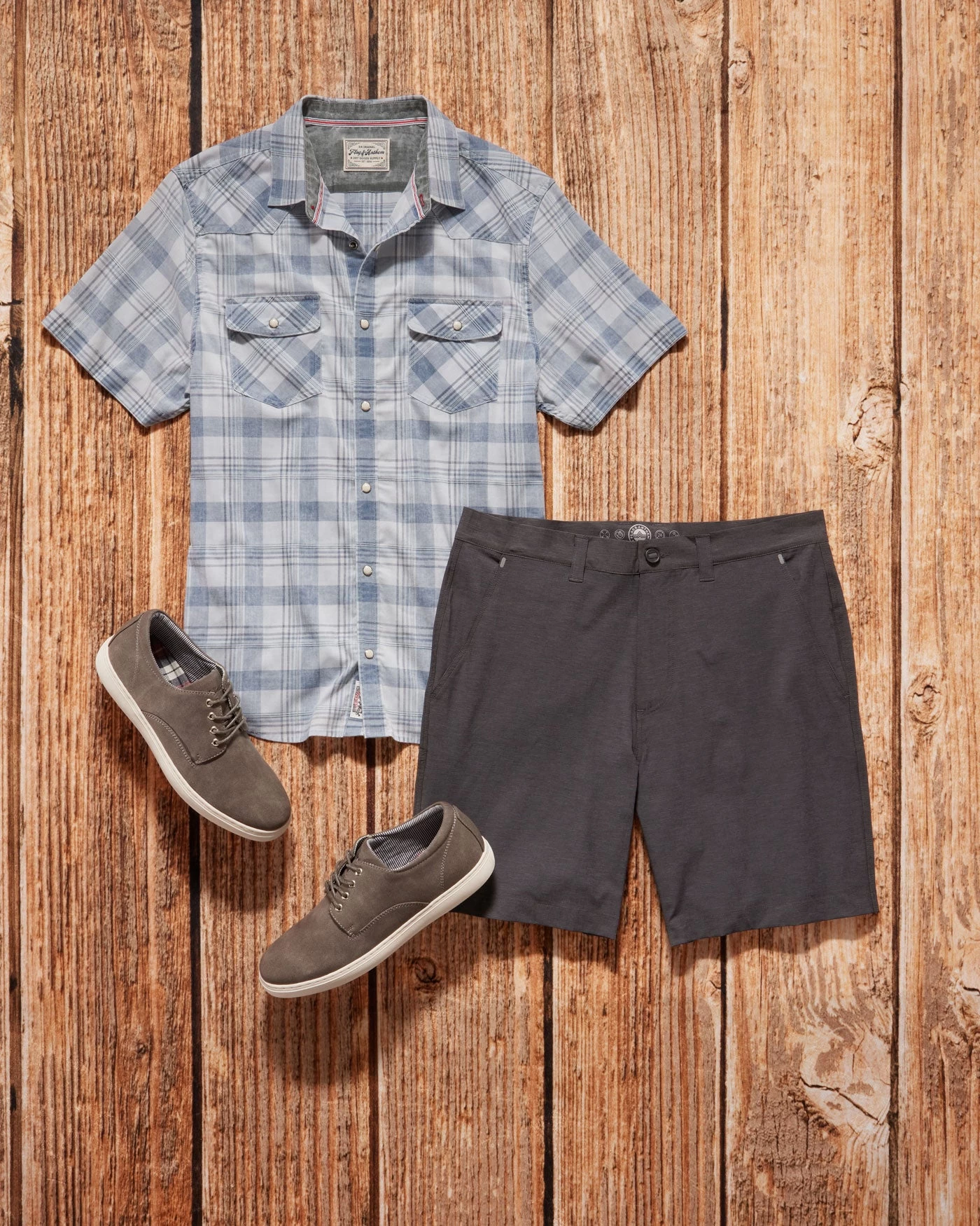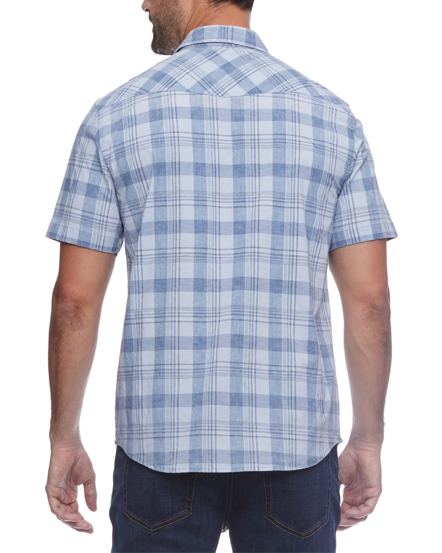 Made from a cotton blend fabric infused with the perfect amount of four-way stretch, this vintage-inspired short sleeve shirt fits and feels like your favorite, perfectly worn-in button-down -lightweight and breathable. Contrast chambray fabric in collar and cuffs. Dual front flap pockets; pearlized snap closures. Tailored athletic fit.