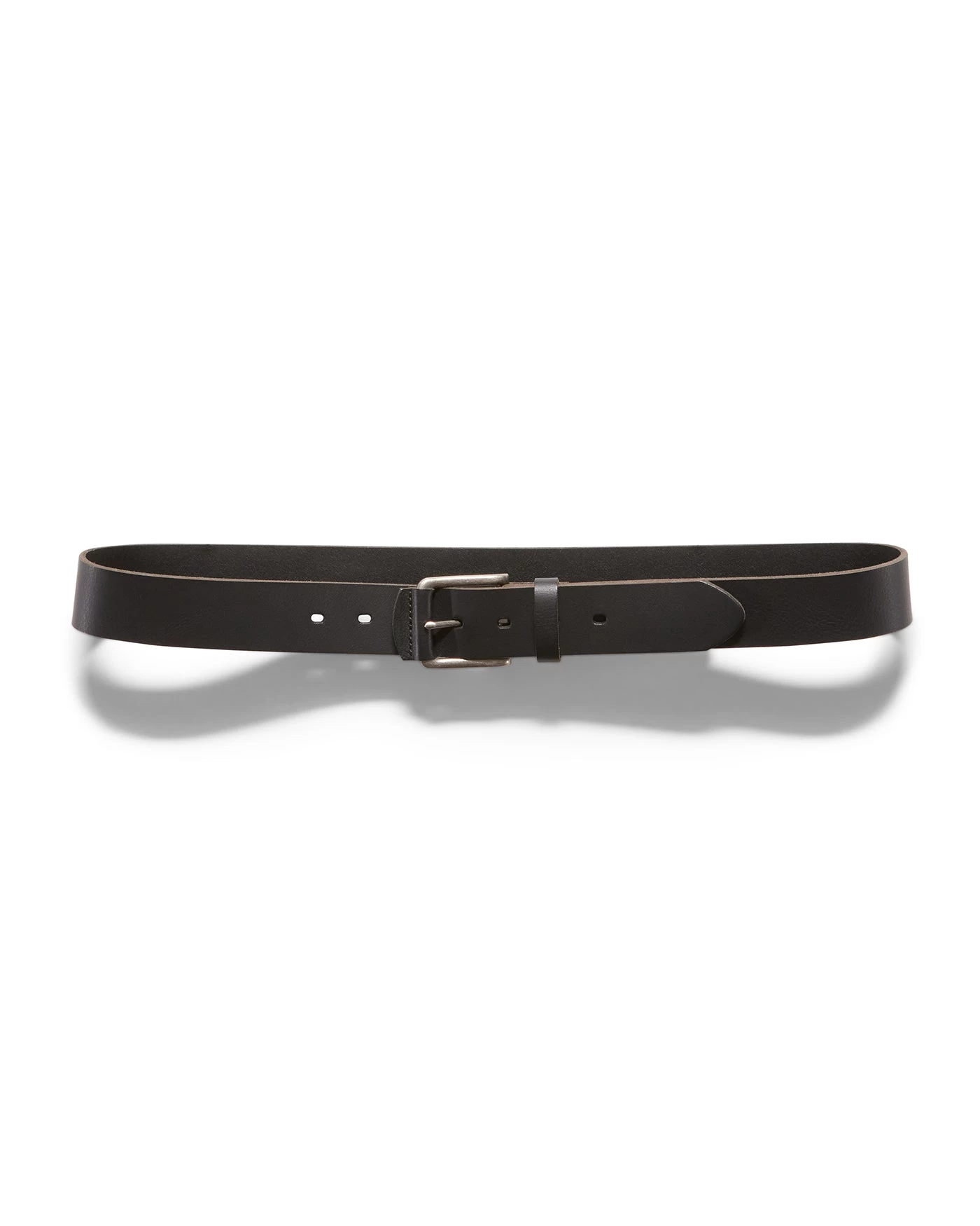 This soft, smooth leather belt pairs equally well with denim or chinos. Featuring a silver-tone single-prong buckle and double leather loops, this belt is designed to be a classic, everyday accessory.Â