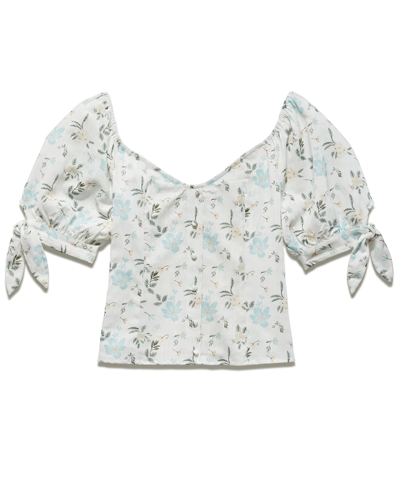 Start your day in full bloom with our Cary Floral Print Puff Sleeve Button-Front Top. Lightweight and airy woven fabric, decorated with a delicate, vintage-inspired flower design, shapes a V-neckline and short puff sleeves with a keyhole opening and self-binding tie. A darted bodice, with a button placket, ends at a slightly curved hem. Smocked center back panel.
