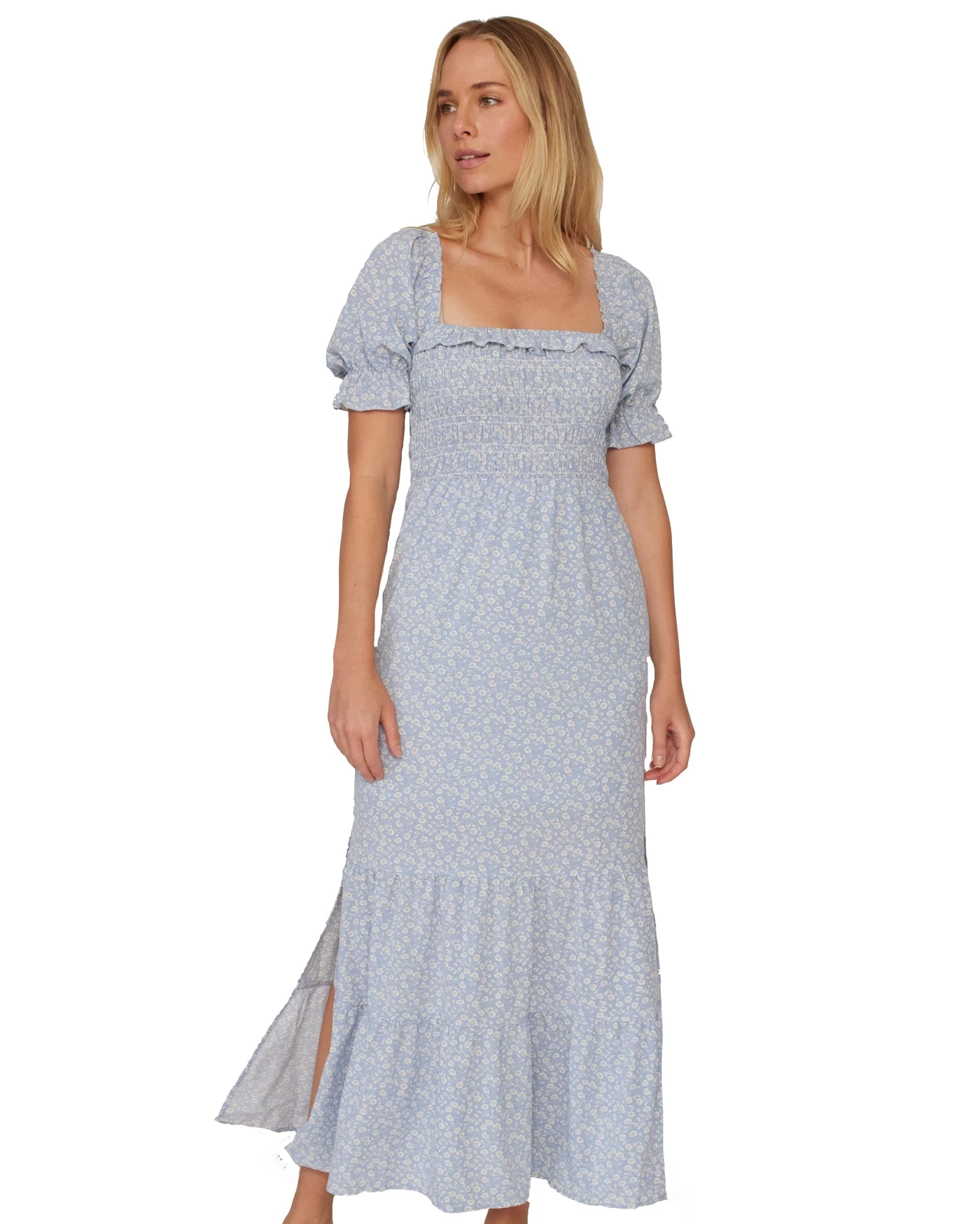 Flattering, feminine, and floral – this must-have maxi dress is perfect for those days that end in chasing sunsets! Lightweight and breathable gauzy woven fabric, decorated with a beautiful floral print throughout, shapes this darling day dress and its short puff sleeves with elasticized ruffle cuffs and a straight ruffled neckline that tops a stretchy smocked bodice. Elastic waist continues to a flowy maxi skirt that ends with a drop seam tier with a flirty slit. Half skirt lined.