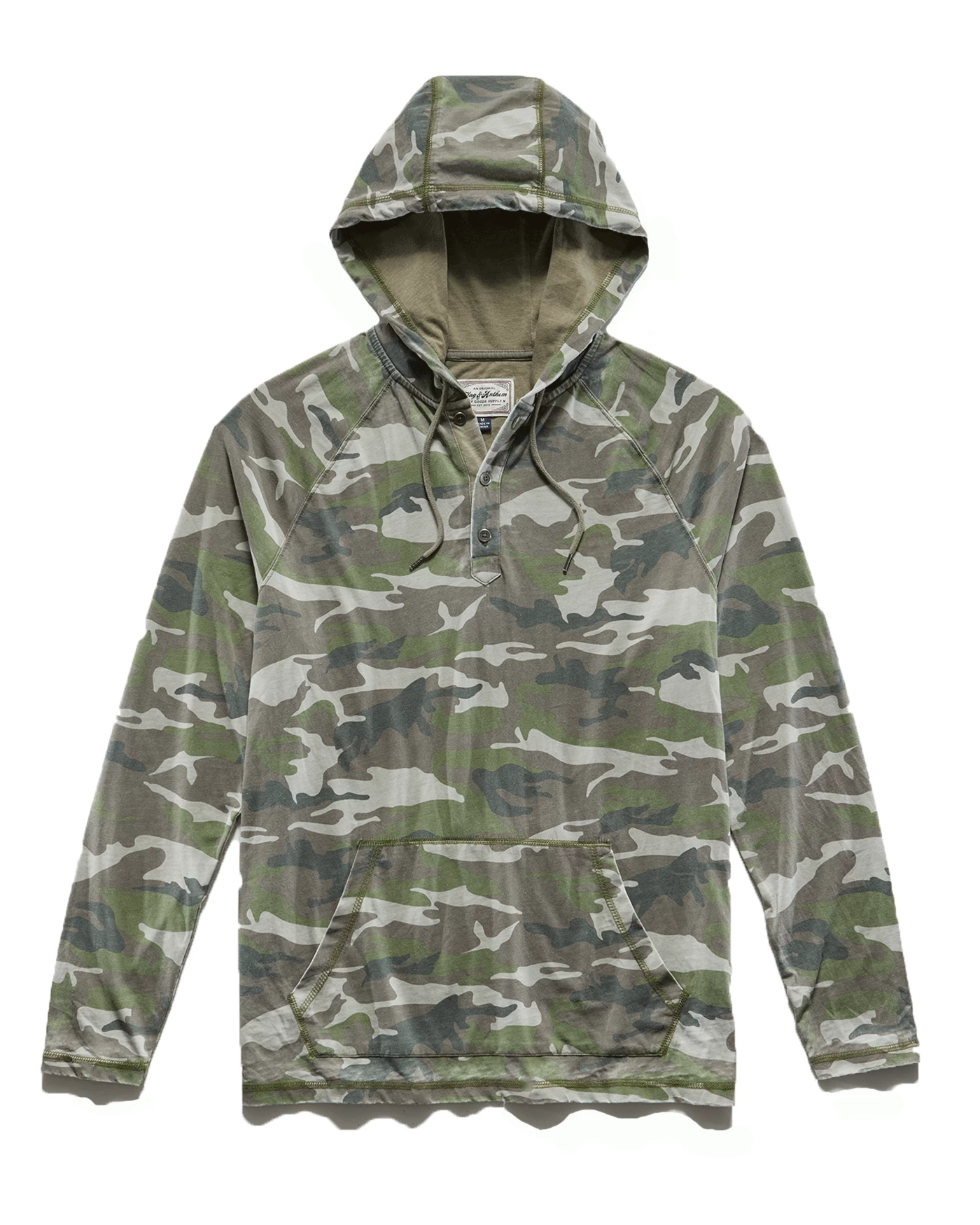 There’s no disguising the casual comfort of this camo hoodie. Cut from a super-soft cotton-blend fabric in a tailored athletic fit, the Dunbarton Hoodie is your constant companion for off-duty days, travel, happy hour, and everything in between. Raglan-style shoulders with overlock stitching detail; 3-button henley front.