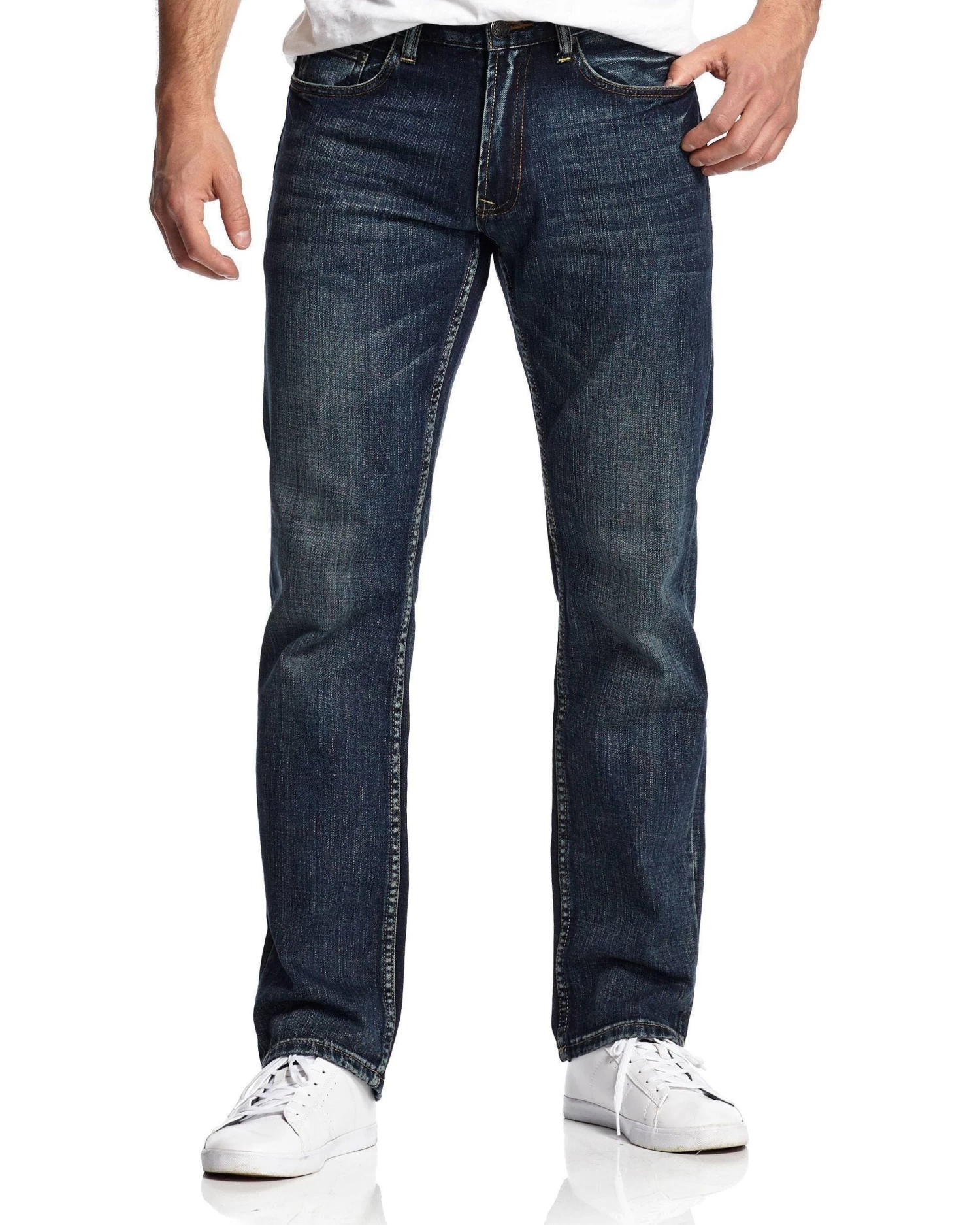 Made from premium cotton fabric infused with the perfect amount of stretch, these timeless straight-fit jeans combine comfort and style seamlessly. Traditional 5-pocket styling; zipper fly with logo button closure. Leather logo back patch. Medium wash.Â