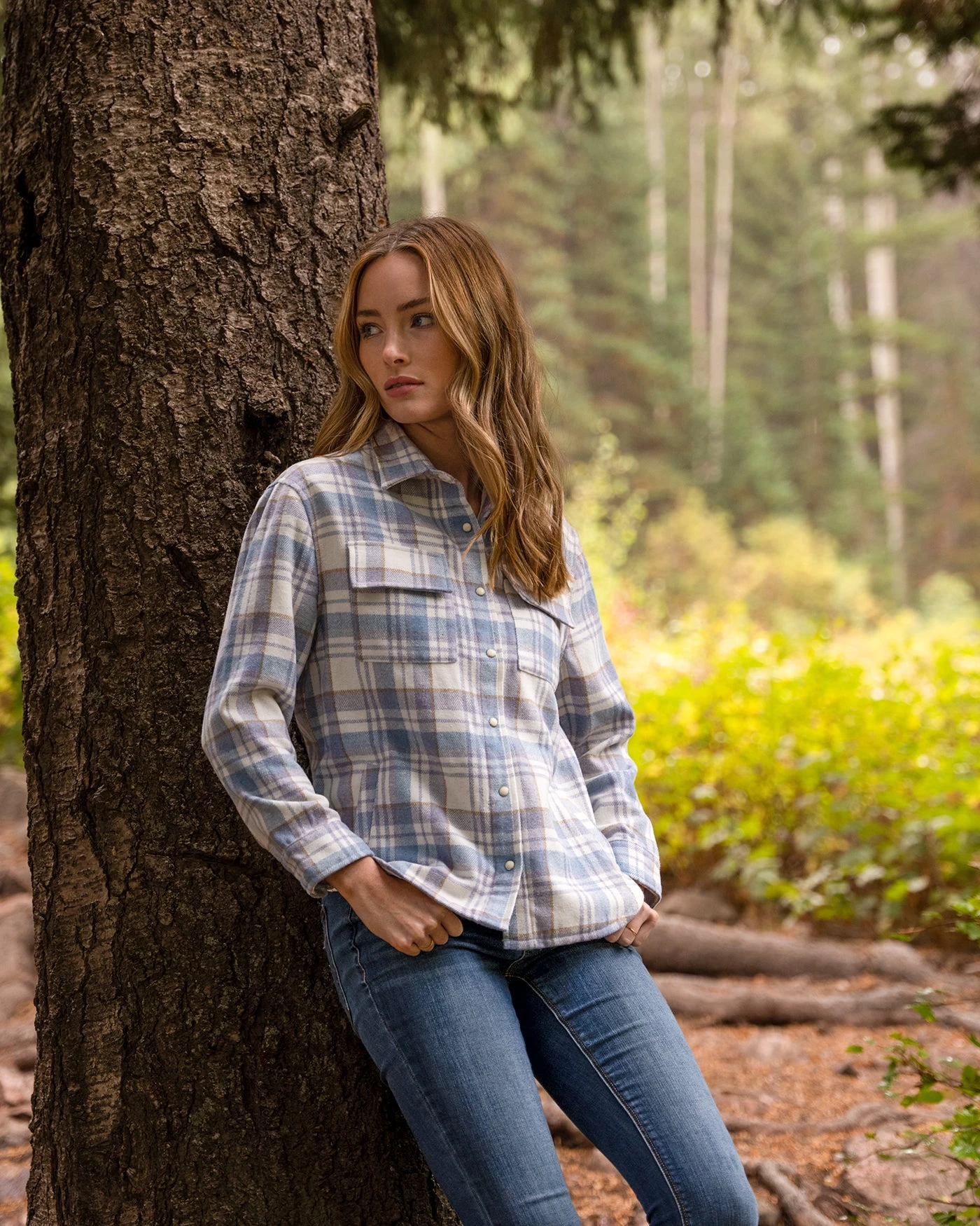 Round out your cool-weather wardrobe with this versatile women’s shirt jacket. Made from a special blend of super-soft fabrics that deliver the promise of warmth, comfort, and protection featuring a classic plaid pattern that goes with just about everything, this layering piece is perfect for chilly mornings, crisp evenings, and every moment in between. Dual front flap pockets + functional welt hand pockets allow you to keep your essentials close and secure. Pearlized snap closure.