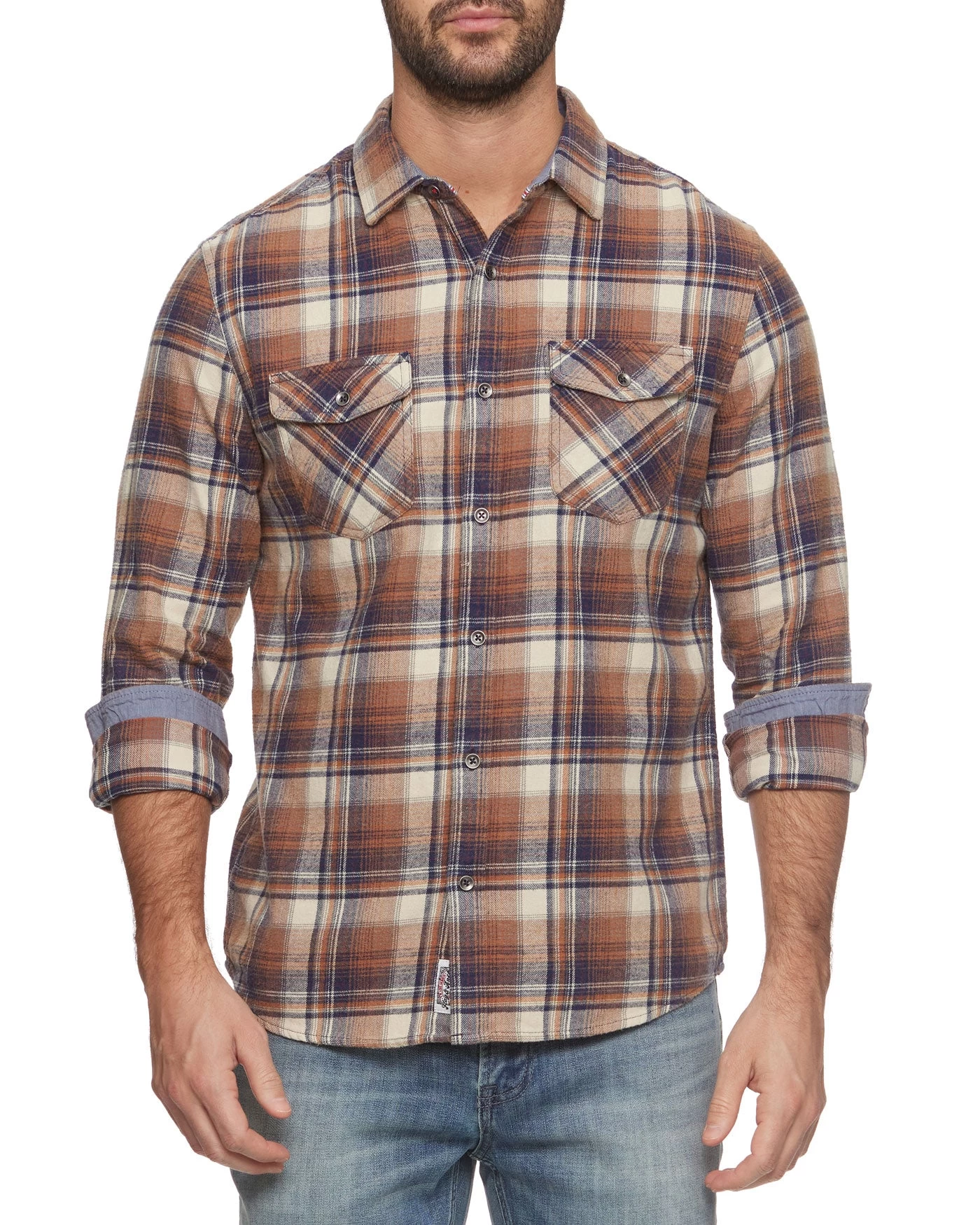 Our Gallant Flannel Shirt is a mid-weight masterpiece – not too heavy, not too light, and still insanely soft. Boasting a classic plaid print, a tailored athletic fit, plus the perfect untucked length, you can wear it on its own with chinos or jeans or leave it open and layered over a henley or graphic tee. Contrast fabric inside collar stand, back yoke, and sleeve cuffs. Dual front flap pockets; button closures.