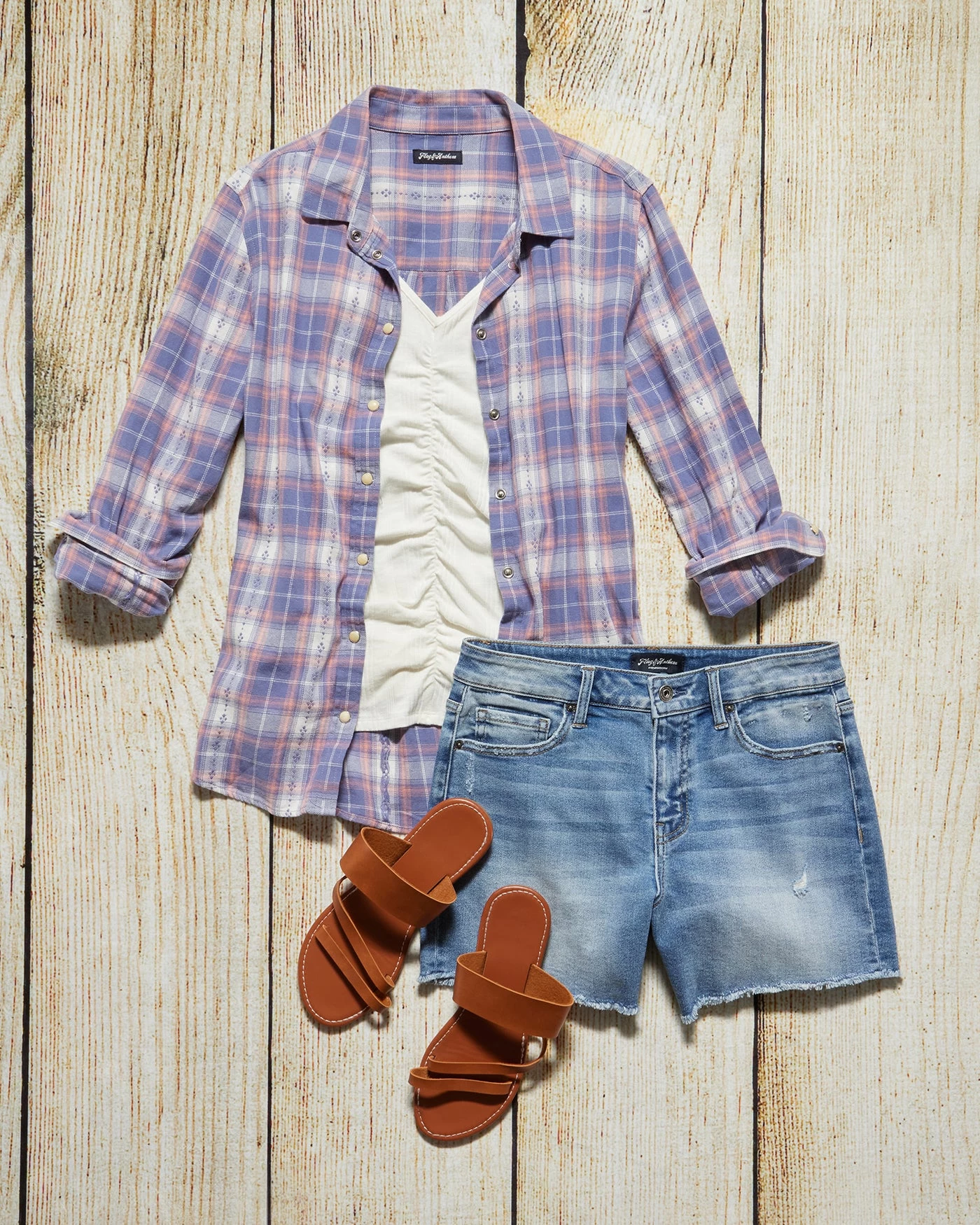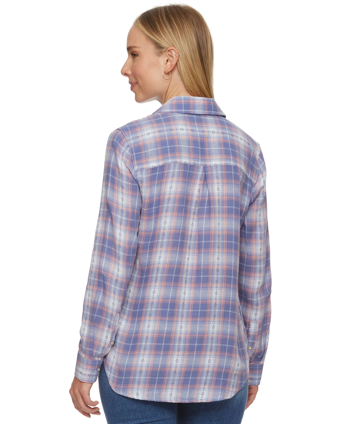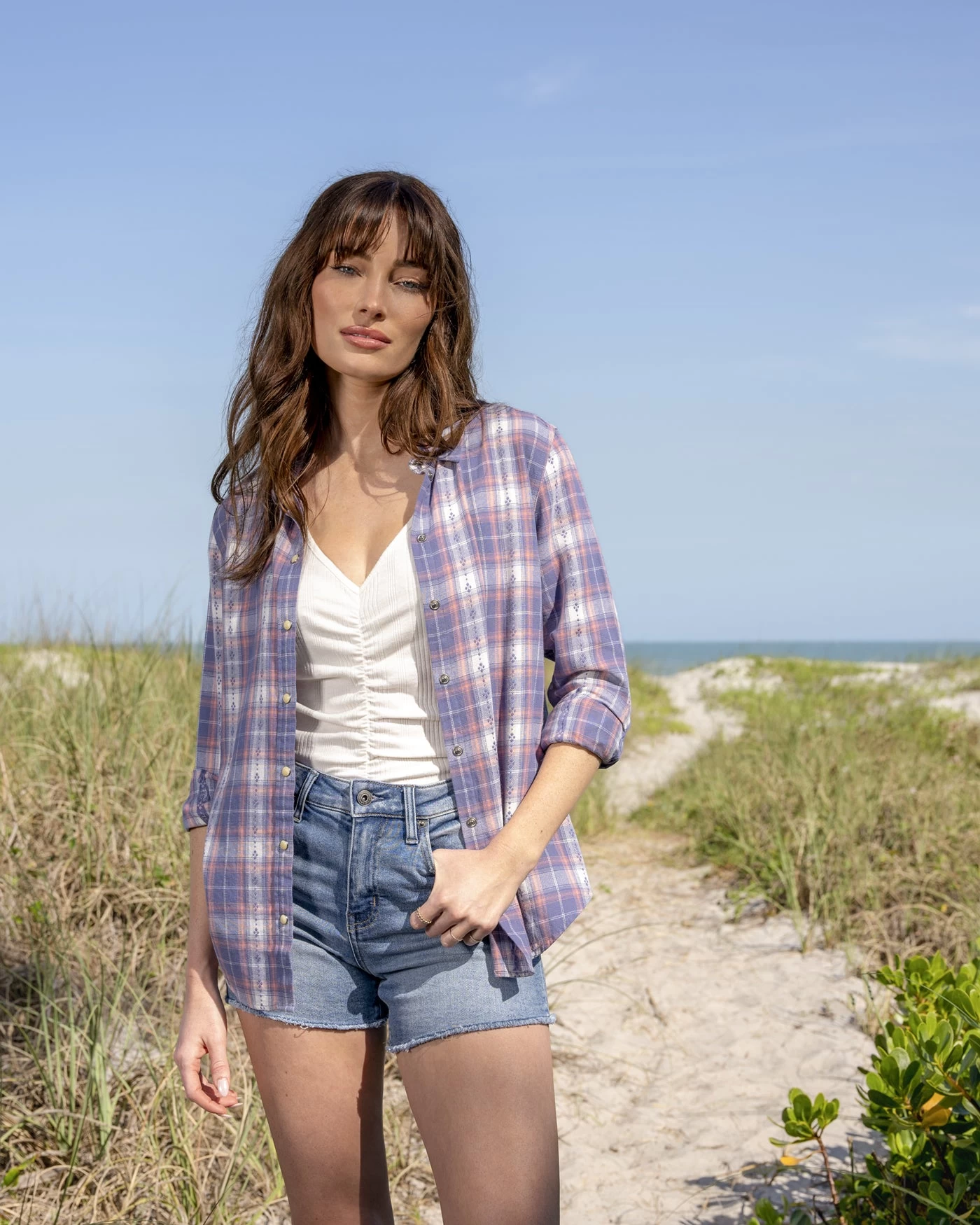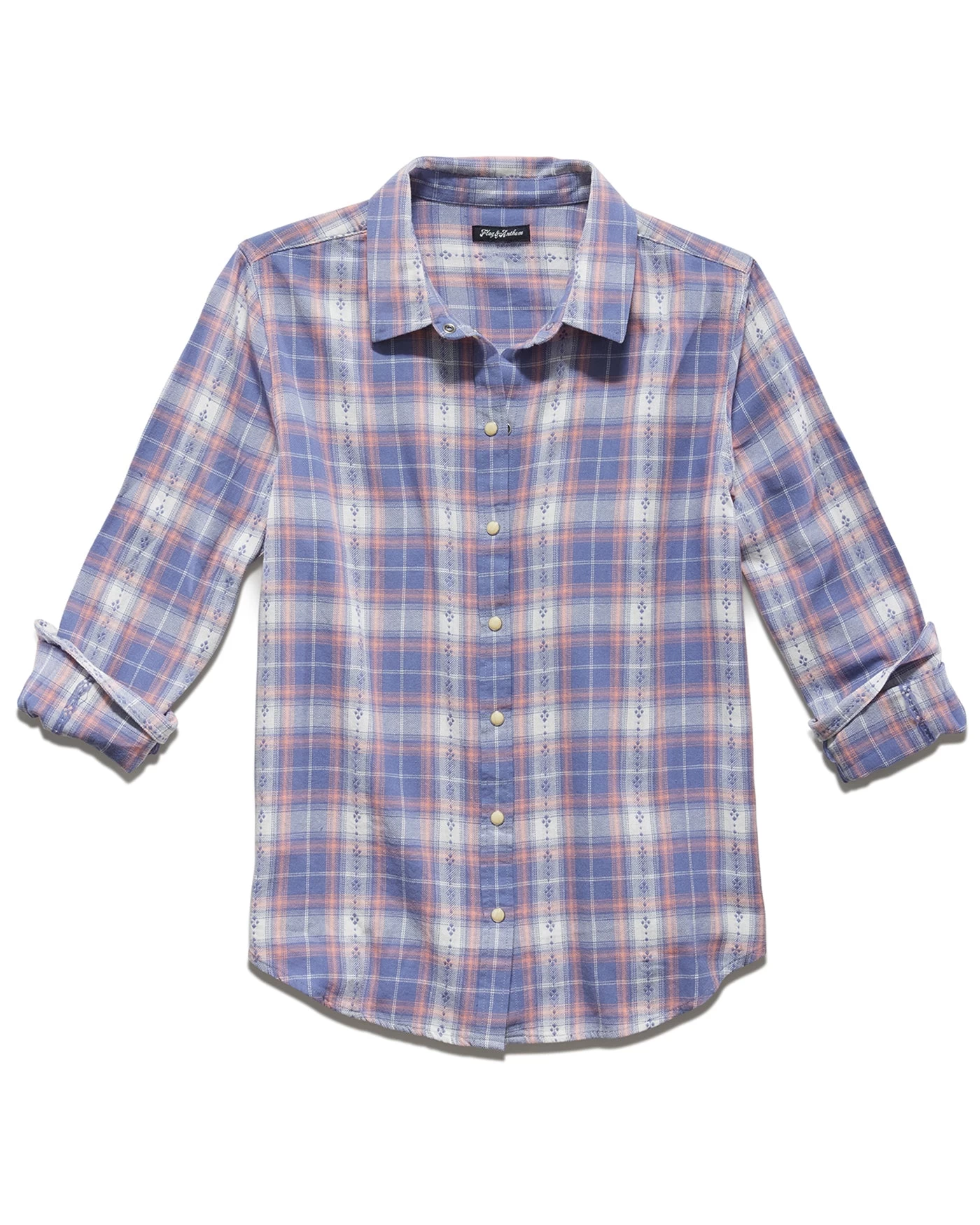 With an easygoing, figure-flattering fit and a classic plaid print, our Harleigh Vintage Washed Shirt is the insanely soft, unbelievably comfortable, βbetter-than-hisβ button-down that every woman needs. Contrast fabric inside neckband, back yoke, sleeve cuffs, and plackets. Snap closures; slightly curved hem.
