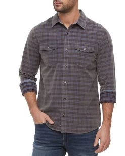 Your classic corduroy just got a comfortable upgrade thanks to a unique garment wash that makes it extra soft. Impeccably tailored in the perfect untucked length, you can wear it with jeans or chinos for a polished look. Contrast fabric inside collar stand, back yoke, front placket, and sleeve cuffs. Dual front flap pockets; button closures. Tailored athletic fit.