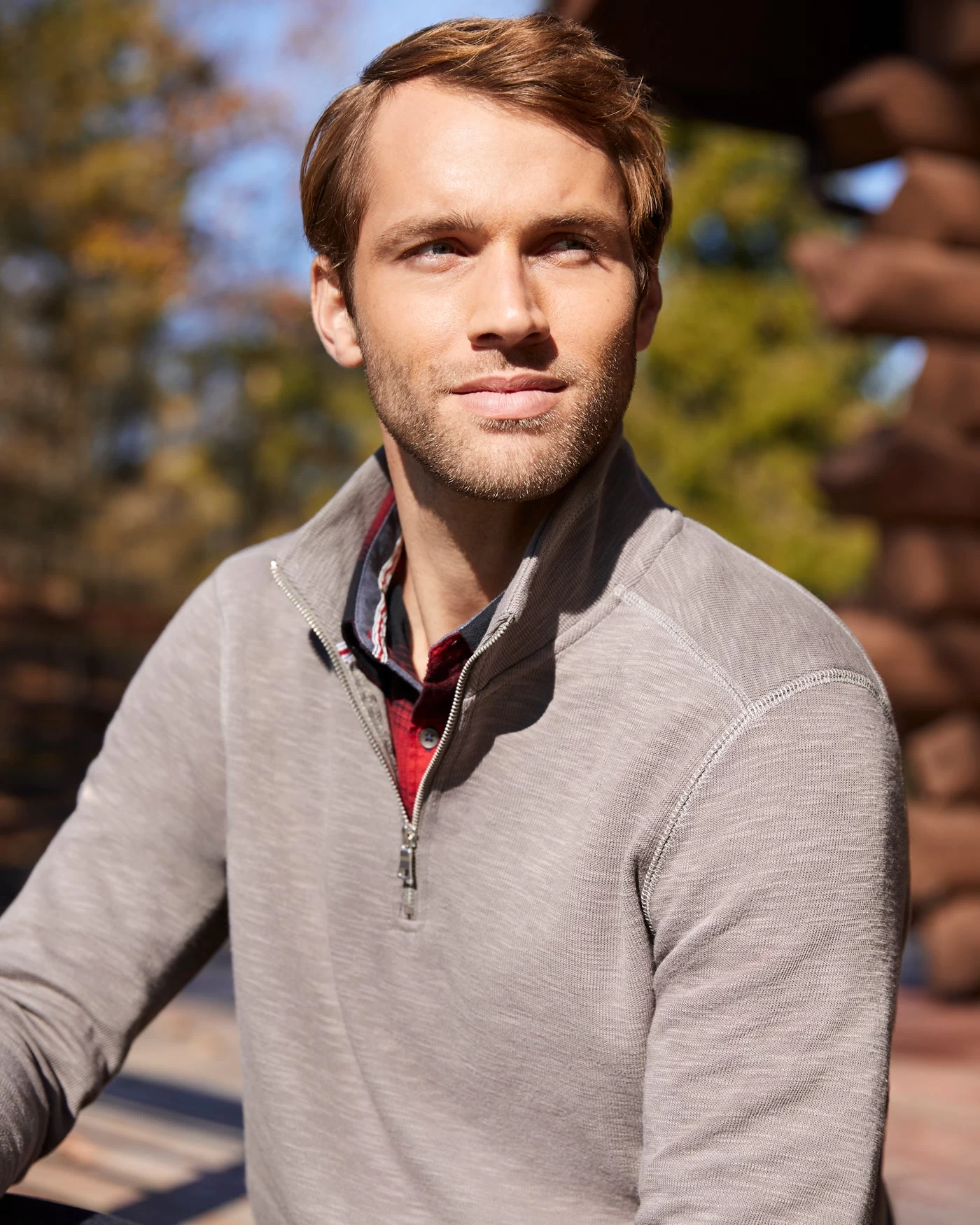 Our most iconic pullover returns this season, updated with the perfect amount of stretch for easy movement. Made from a lightweight and comfortable cotton blend fabric in a tailored athletic fit, this versatile everyday essential wears well over tees or lightweight long-sleeve shirts to keep you warm without adding any extra bulk. Overlock stitching along collar, armholes, cuffs, and hem. Standing collar with quarter-zip front placket.