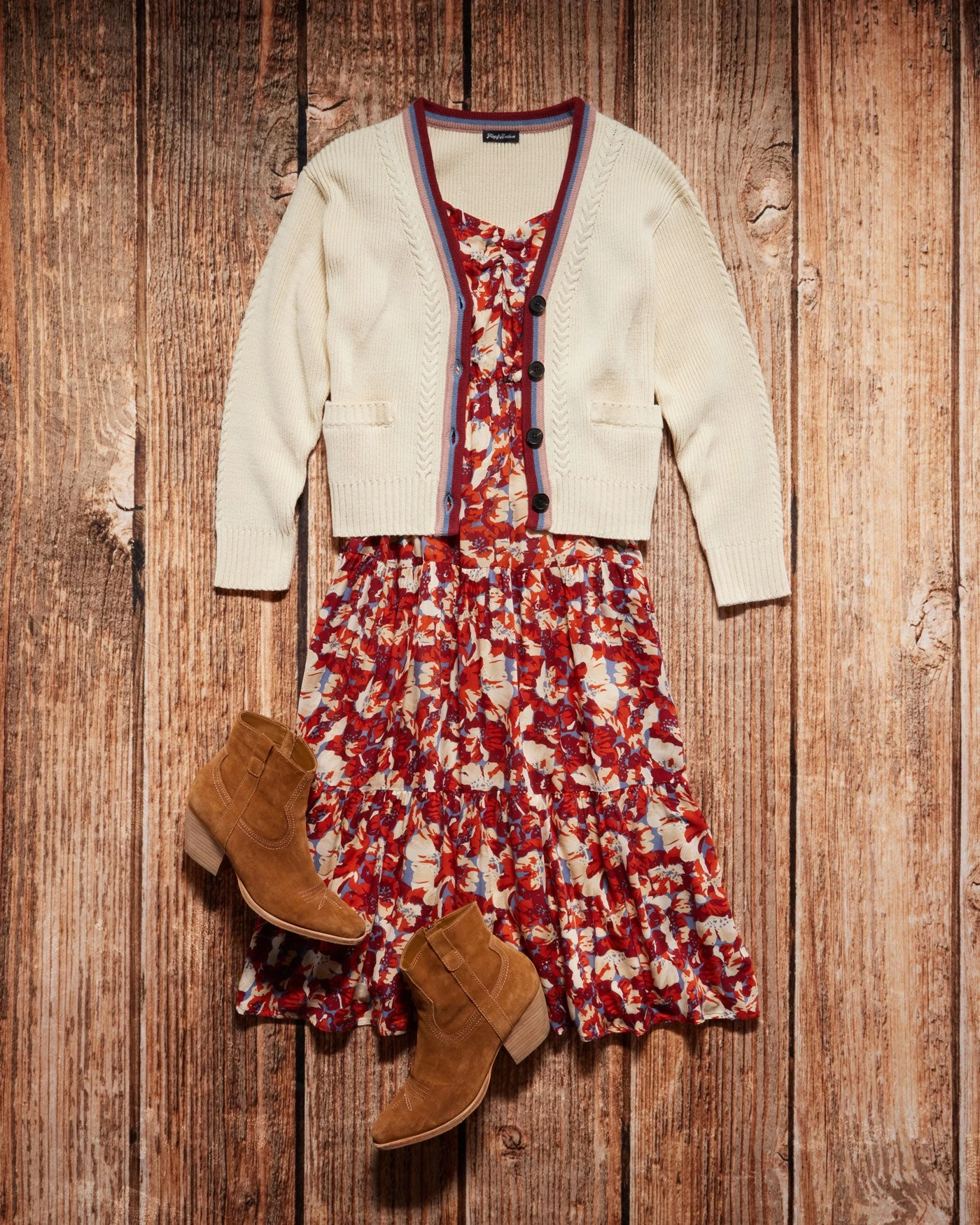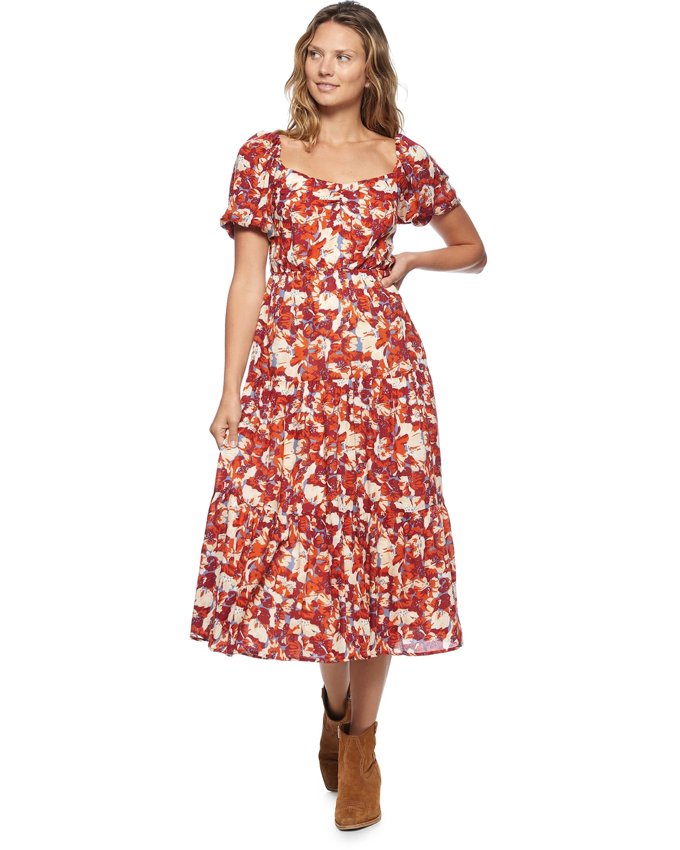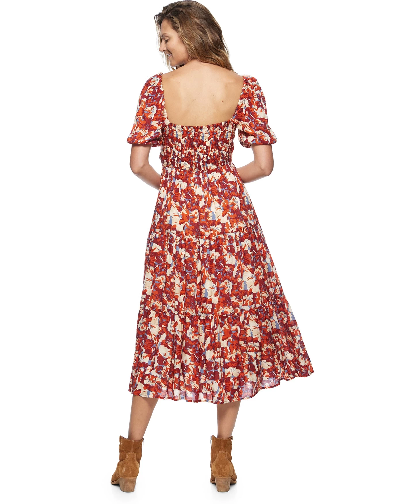 You’ll find yourself reaching for our Loleta Floral Print Smocked-Back Midi Dress every time you dress to impress! Lightweight and airy woven fabric, with a gorgeous floral print throughout, shapes short puff sleeves and a feminine sweetheart neckline with encased elastic to create a flattering, ruching effect. The high fitted waist falls down to a tiered, figure-skimming silhouette before ending at a midi hem. Smocking at the back bodice allows for a perfect fit. Functional on-seam pockets. Lined body.