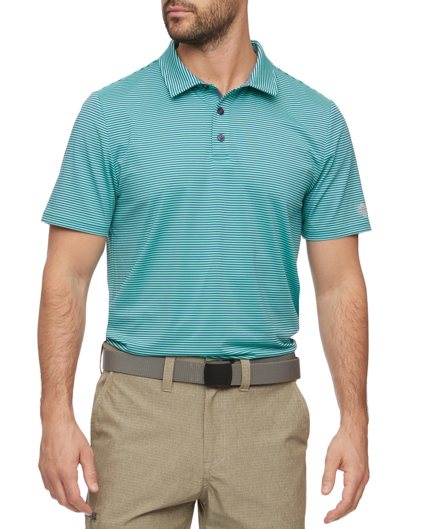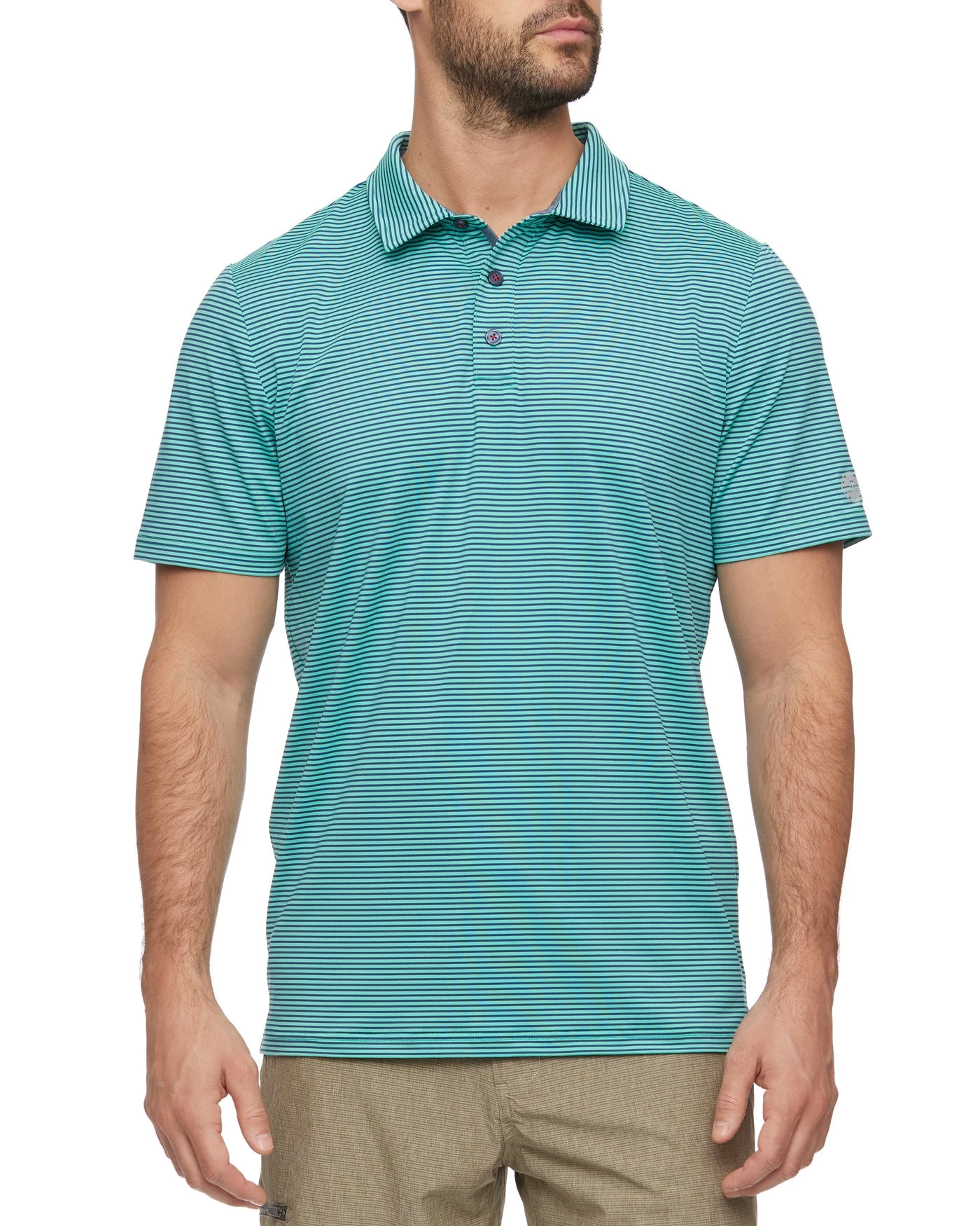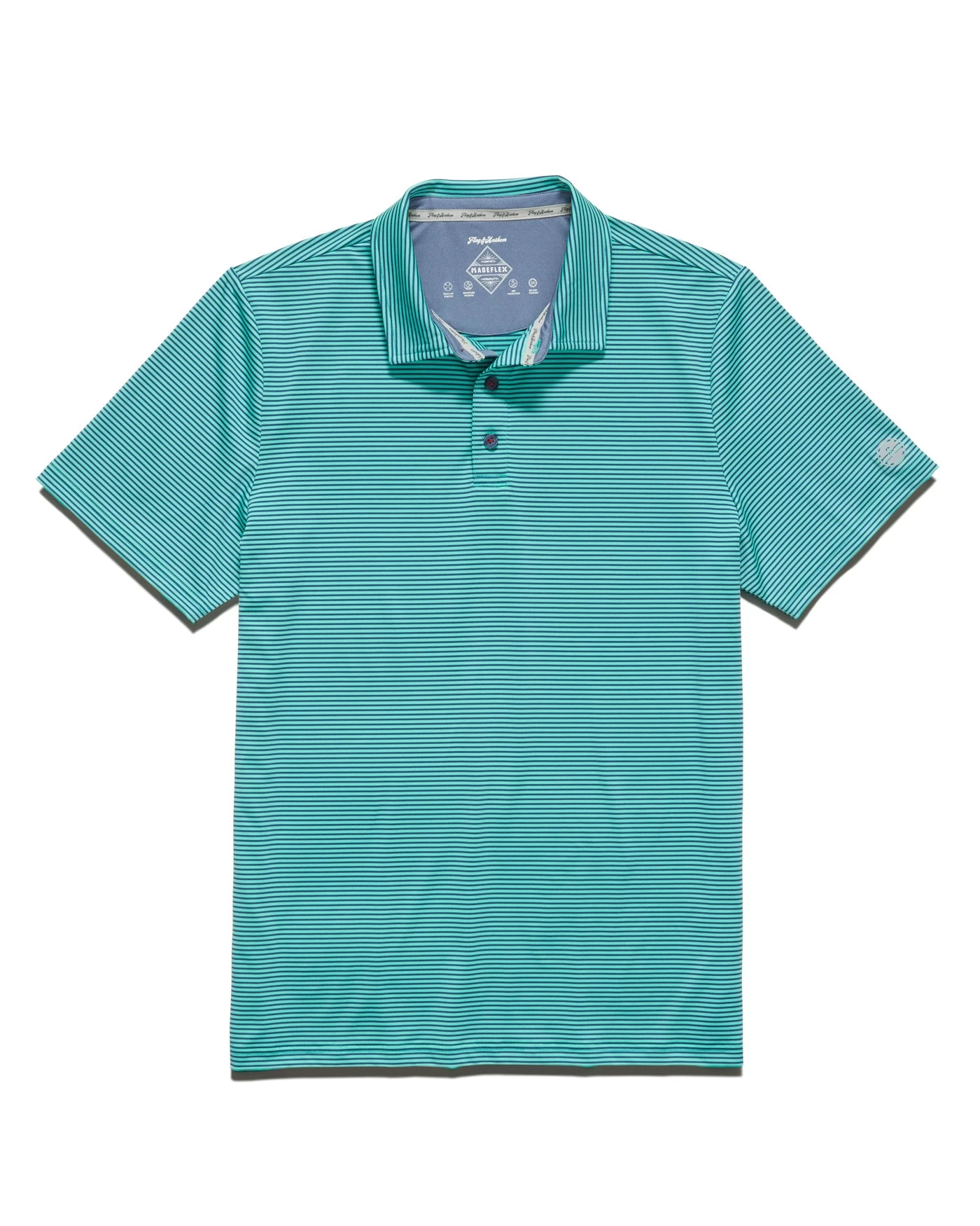 An innovative performance polo designed to look sharp, feel comfortable, and effortlessly transition from a morning on the water to an afternoon on the course and then out to dinner and drinks afterward. Featuring some of our best performance technologies to wick away moisture, maximize mobility, and shield you from the sun plus a versatile heathered look with micro-feeder stripes, this polo will quickly become your go-to. Traditional three-button front placket; rubberized MadeFlex performance patch logo at center back neck. Tailored athletic fit.