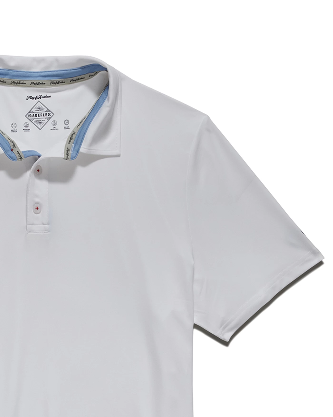For comfort on the course and style for the clubhouse, this is the performance polo you need. Engineered with course-ready performance technology to wick away moisture, maximize mobility, and shield you from the sun plus the versatility to transition seamlessly from one activity to the next, we’re confident this polo will fit your active lifestyle as it does ours. Traditional three-button front placket; rubberized MadeFlex performance patch logo at center back neck. Tailored athletic fit.