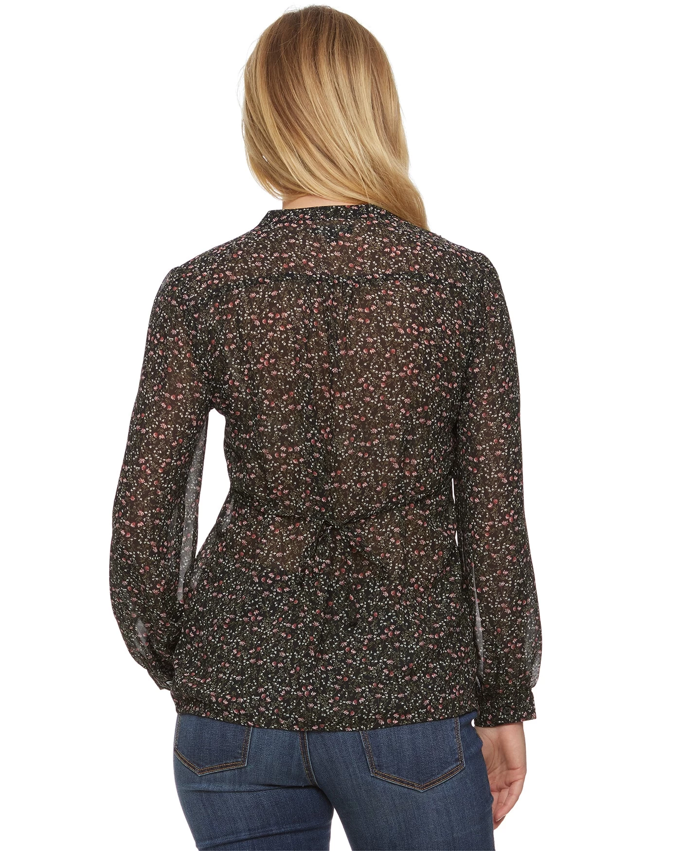 Flirty florals paired with pintuck pleats equals feminine perfection. Made from a lightweight and breathable woven fabric and impeccably tailored to flatter all, this long-sleeve top will keep you looking good and feeling comfortable whether it’s a trip to the farmers market or a brunch date with the girls. Light shirring at armholes; adjustable tie back.