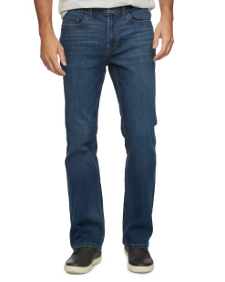 All-day comfort comes easy in our premium stretch denim jeans. Ideal for everyday casual wear, our bootcut Sterling Jean features a classic streamlined silhouette with a slight flare at the knee, traditional 5-pocket styling, and a hint of spandex for a more flexible fit. Regular rise; zip-fly front with logo button closure. Leather logo back patch. Medium wash.
