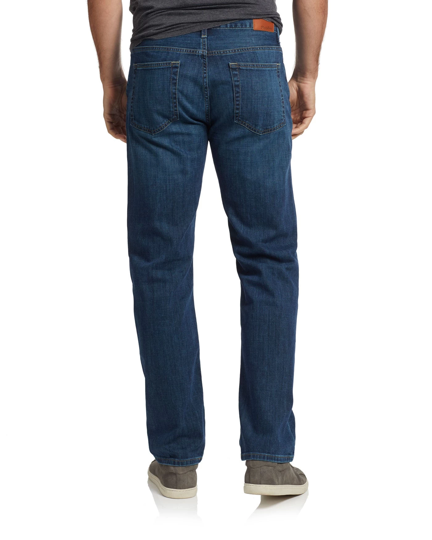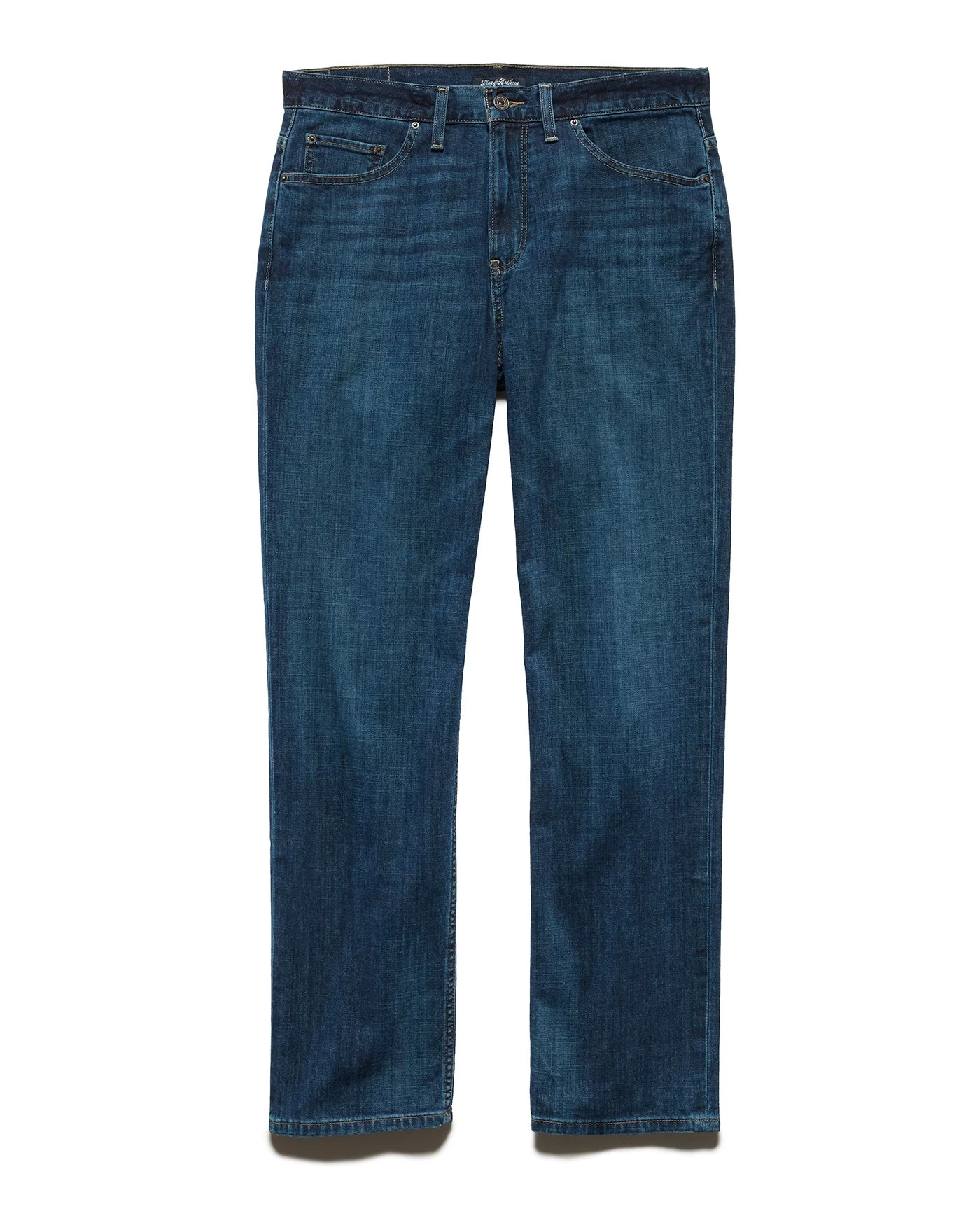 All-day comfort comes easy in our premium stretch denim jeans. Ideal for everyday casual wear, our relaxed Sterling Jean features a looser fit through the hip and thigh with a streamlined straight leg, traditional 5-pocket styling, and a hint of spandex for a more flexible fit. Regular rise; zip-fly front with logo button closure. Leather logo back patch. Medium wash.