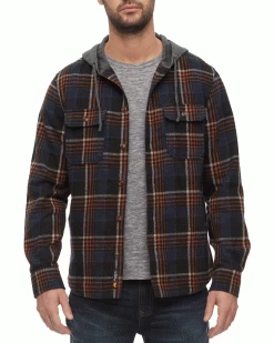 Perfect for layering when the temperature drops, this classic shirt jacket features an adjustable drawstring hood for an added layer of protection. Made from super-soft yet durable cotton blend fabric that’s matched by the versatility of a plaid print, our Summit Hooded Shirt Jacket is a must-have for all-day comfort and everyday style. Dual front flap pockets + angled slit pockets allow you to keep your essentials close and secure. Button closures.