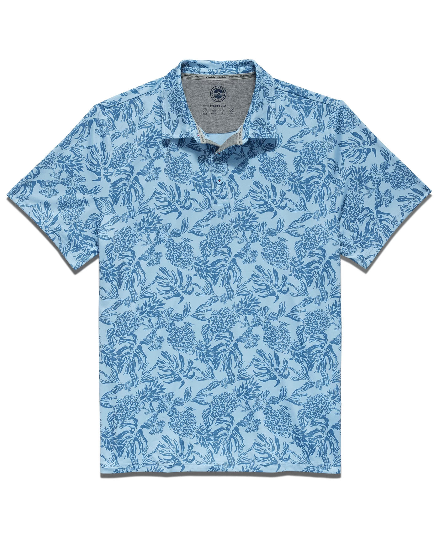 This palm print polo packs all the performance punch of your favorite golf polo into a versatile style that you can wear anywhere. Made from a lightweight and breathable jersey fabric that delivers moisture-wicking, UPF 30 sun protection, and easy care benefits plus four-way stretch for optimal mobility during your next round. Traditional three-button front placket; rubberized MadeFlex performance patch logo at center back neck. Tailored athletic fit.