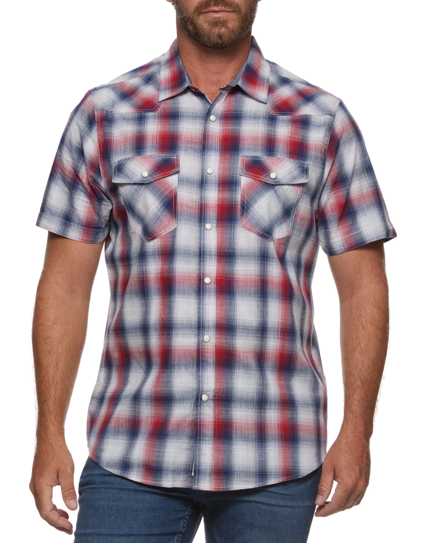 Made from 100% premium cotton in the perfect untucked length, our Towson Western Shirt is casual, comfortable, and built to last. Whether you wear it on its own or layered underneath a sweater or over your favorite tee, it instantly elevates your everyday look thanks to its classic details and endlessly versatile style. Contrast fabric inside collar stand, back yoke, front placket, and sleeve cuffs. Dual front flap pockets; pearlized snap closures. Tailored athletic fit.