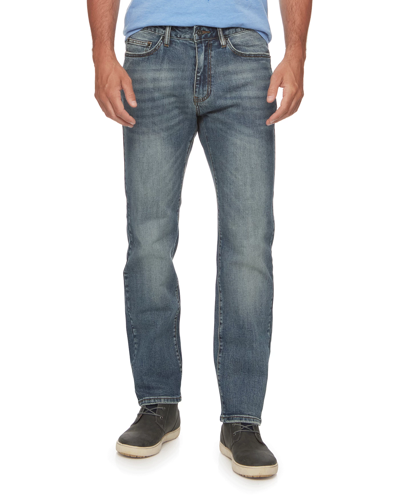 Crafted with just the right amount of stretch, the Vienna medium wash jean features a super-soft cotton-blend construction for a supremely comfortable fit – perfect for a laid-back, office-friendly look that segues into date night. Straight through the leg with traditional 5-pocket styling and a zip-front fly with logo button closure. Leather logo back patch.