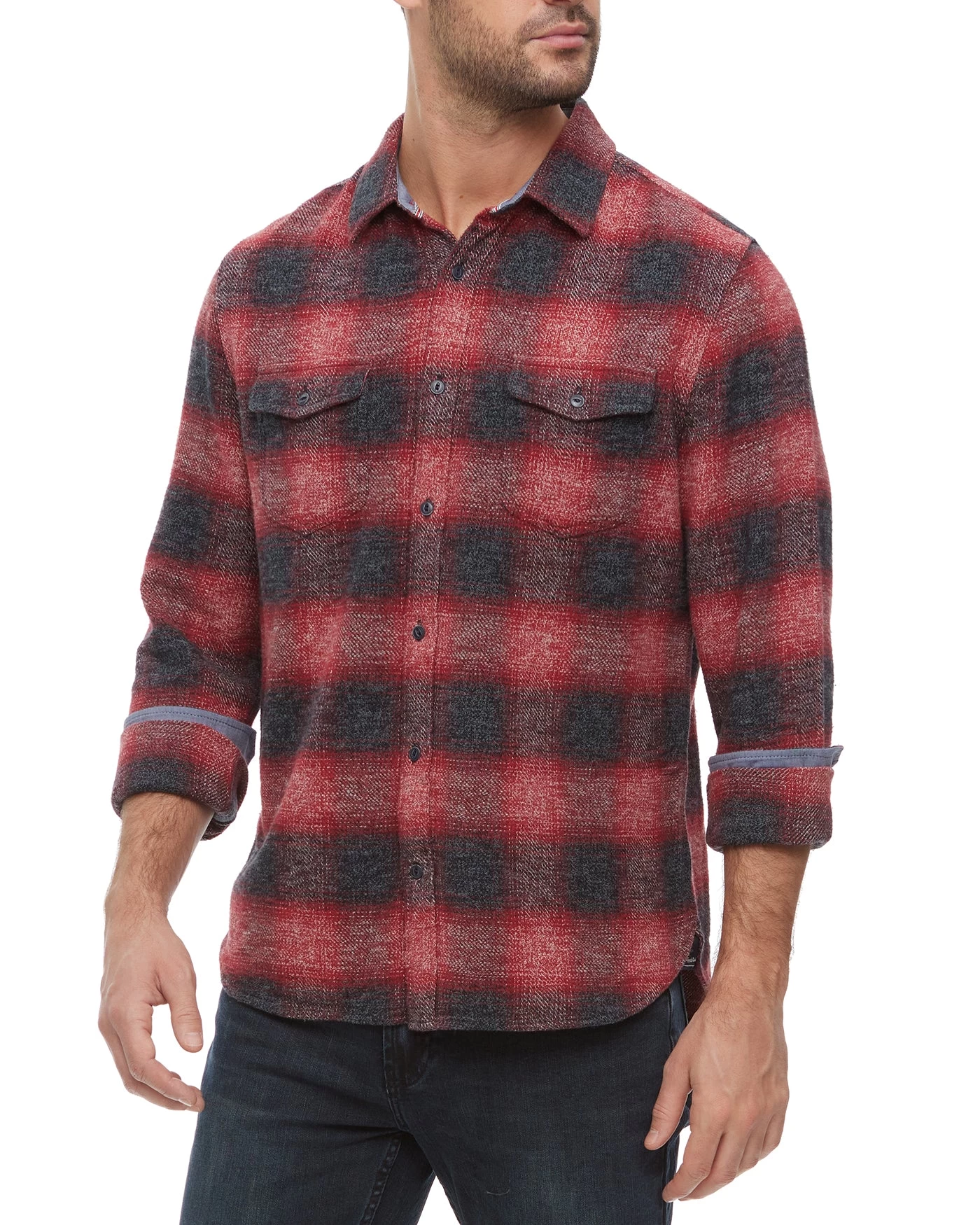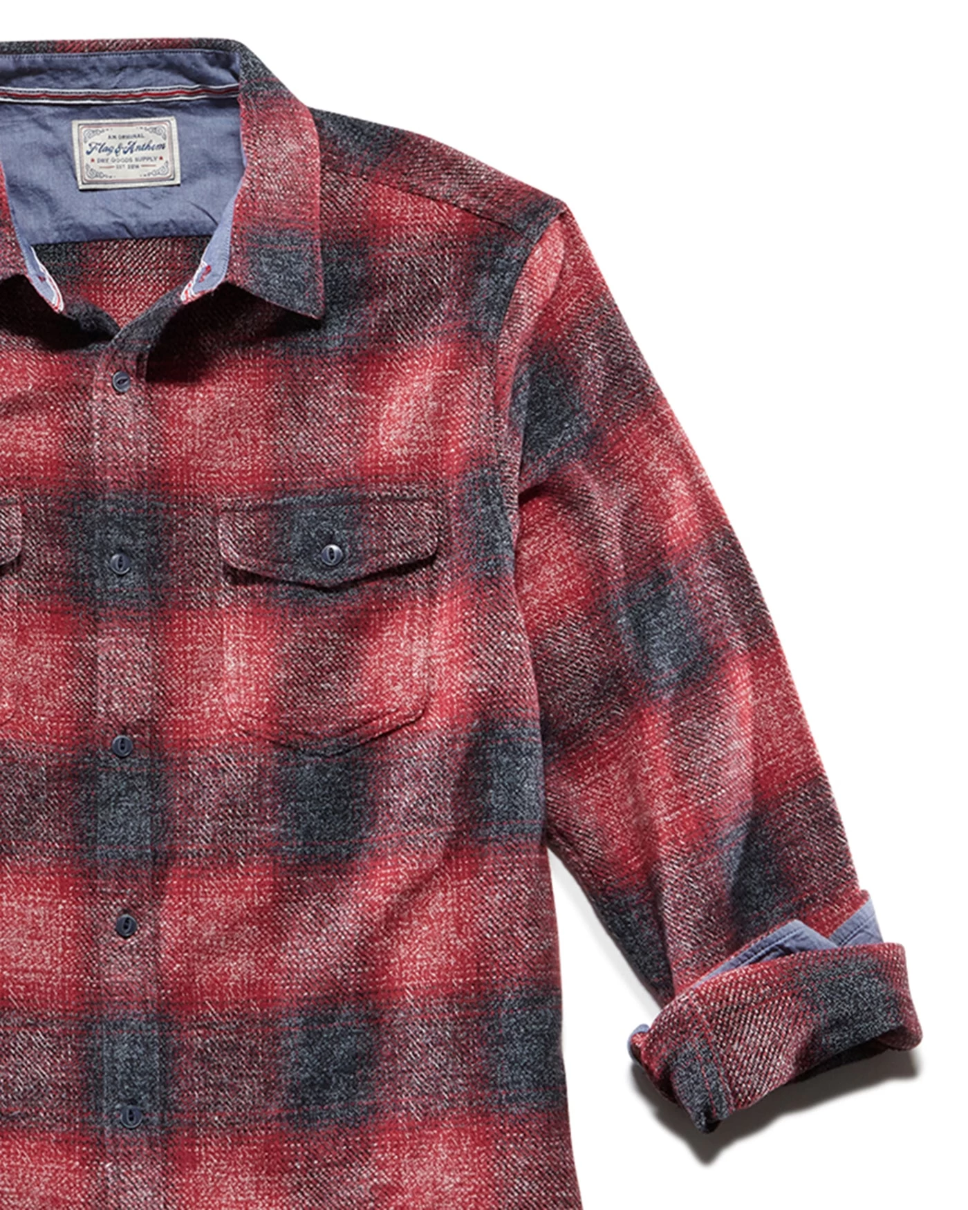 heavyweight cotton in a tailored athletic fit, our Wheatland Flannel Shirt is the ideal choice for casual everyday wear. Easy to layer or wear on its own in the perfect untucked length, this long-sleeve button-front flannel always looks sharp. Dual front chest pockets; button closures. Contrast color fabric inside collar stand, back yoke, front placket, and sleeve cuffs.Â