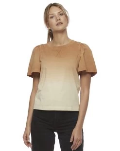 Our Willamina Dip Dye Flutter Sleeve Tee is sure to be your denim’s new bff! Ultra-soft cotton, with a multi-color dip dye effect, shapes this classic crew neck that features short flutter sleeves and a figure-flattering relaxed bodice.