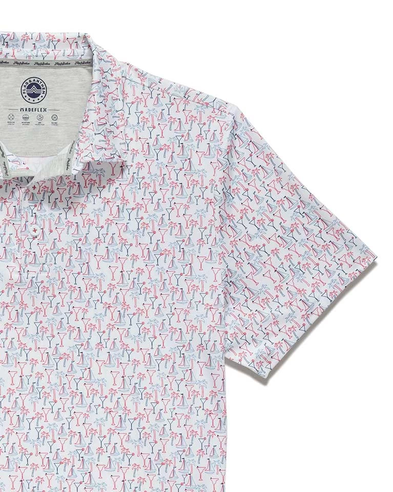 If there’s summer sun and fun in the forecast, our Wilton Vacation Print Polo is just what you need. Made from premium stretch performance fabric that delivers moisture-wicking, UPF 30 sun protection, and easy care benefits, it’s equally great as a golf shirt or what you wear to the beach. Traditional three-button front placket; rubberized MadeFlex performance patch logo at center back neck. Tailored athletic fit.