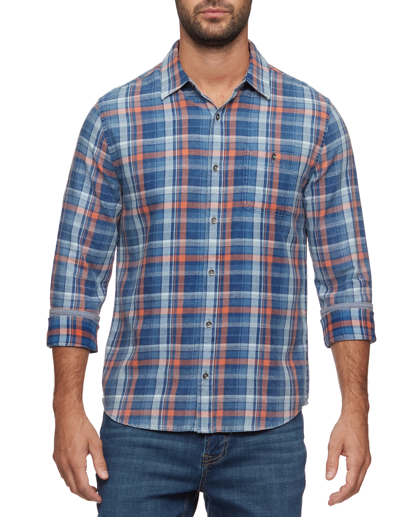 Perfect for layering and great on its own, this long sleeve plaid button-down shirt is a must-have for fall and winter. Made from 100% premium cotton that’s been washed for supreme softness and a perfectly lived-in look, fit, and feel, it’s endlessly versatile and easy to wear for any occasion. Contrast fabric inside collar stand, back yoke, front placket, and sleeve cuffs. Single front chest pocket; button closures. Tailored athletic fit.